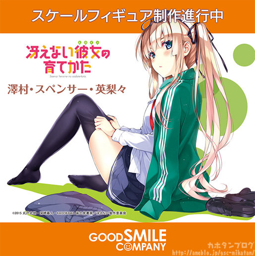 澤村・スペンサー・英梨々もグッスマからスケールフィギュア化企画が進行中。発表されたイラストはジャージを羽織り、座ってニーソを直す仕草の英梨々。